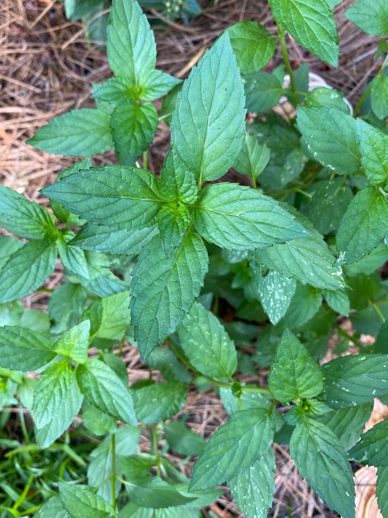 Mint won’t grow in a henpecked house. It grows with abandon at our house